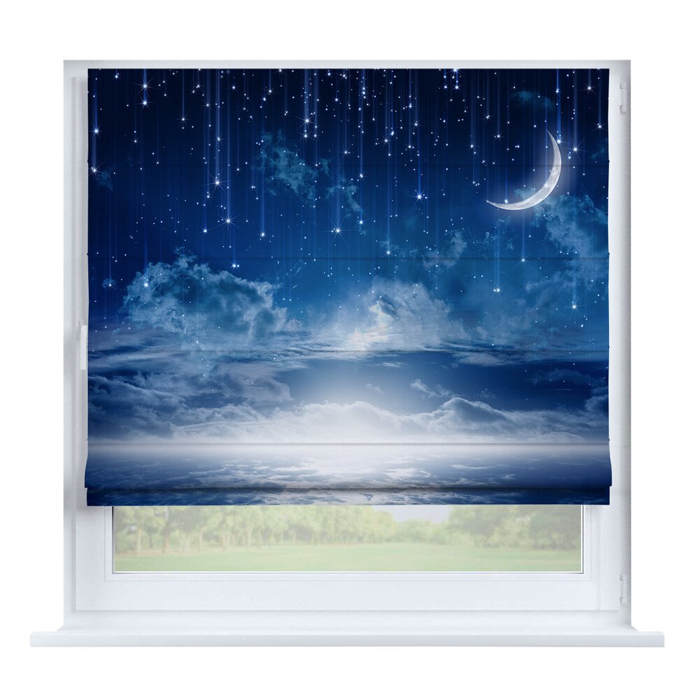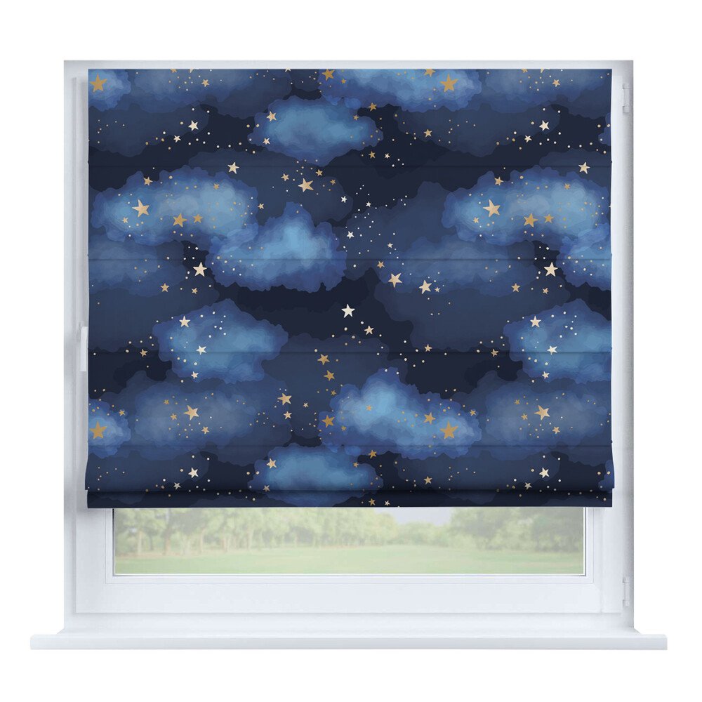 Римская штора для проёма «Ночные облака», карниз верёвочный