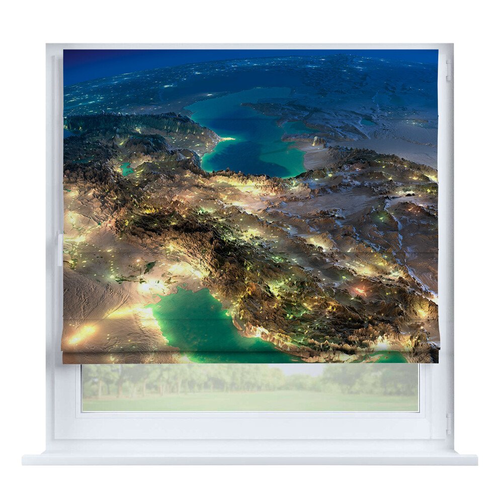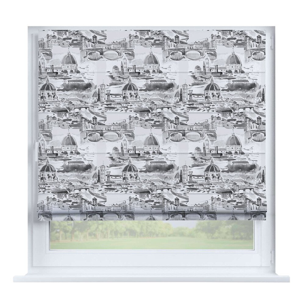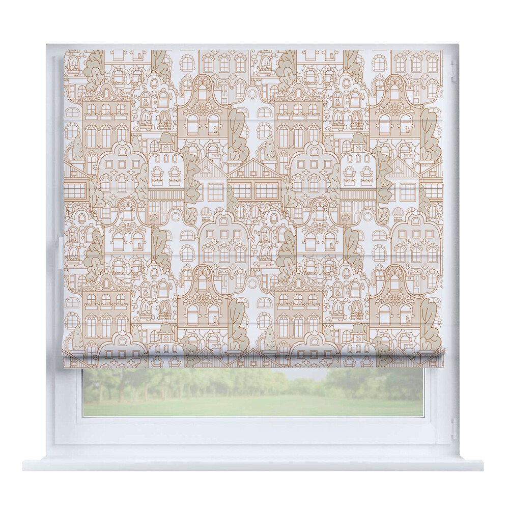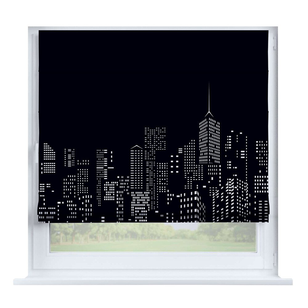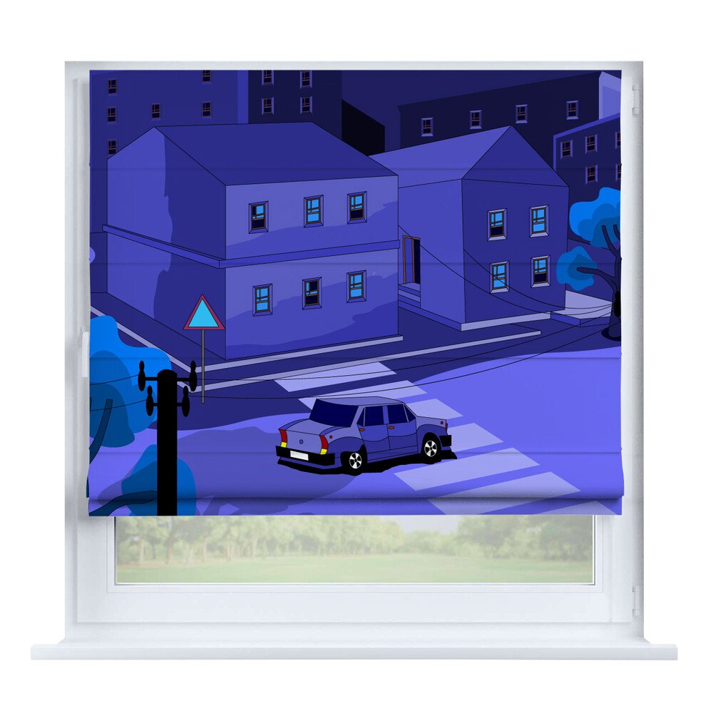 Римская штора для проёма «Вечерний город», карниз верёвочный