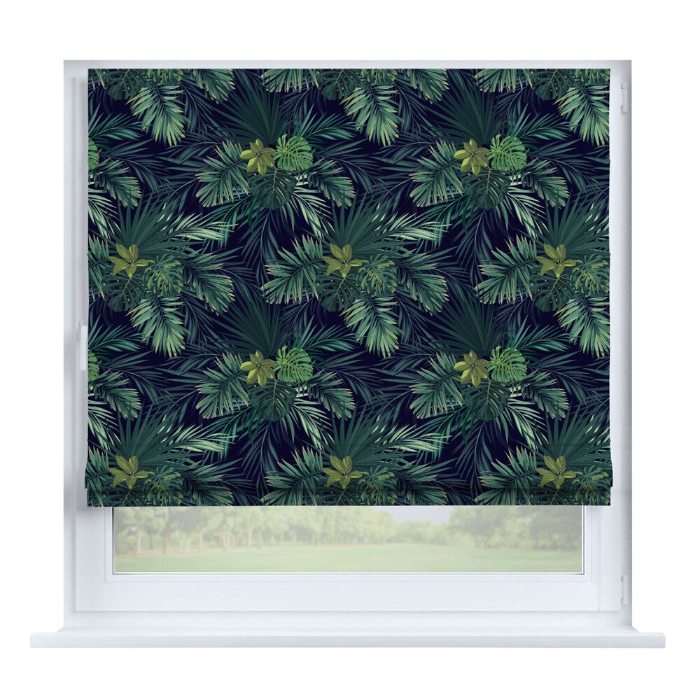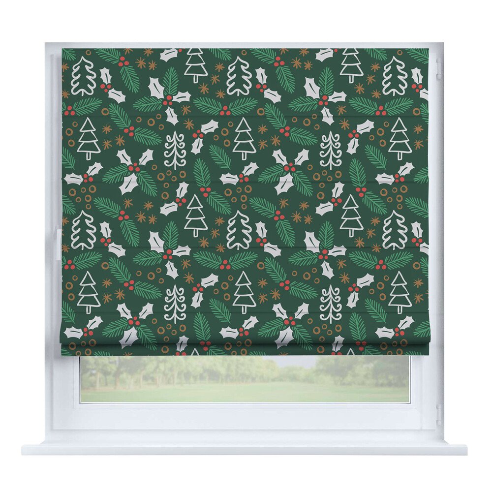 Римская штора для проёма лён димаут тёмно-зелёный, карниз верёвочный