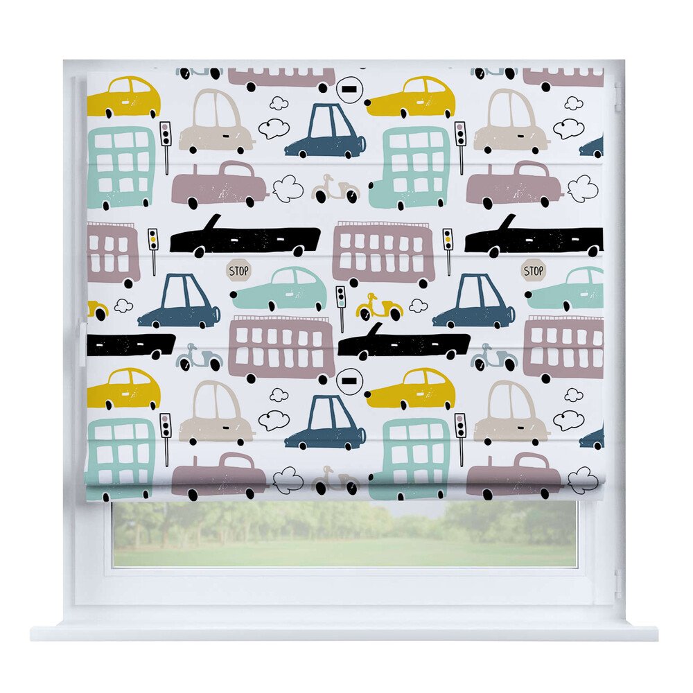 Римская штора для проёма «Скандинавский питомник», карниз верёвочный